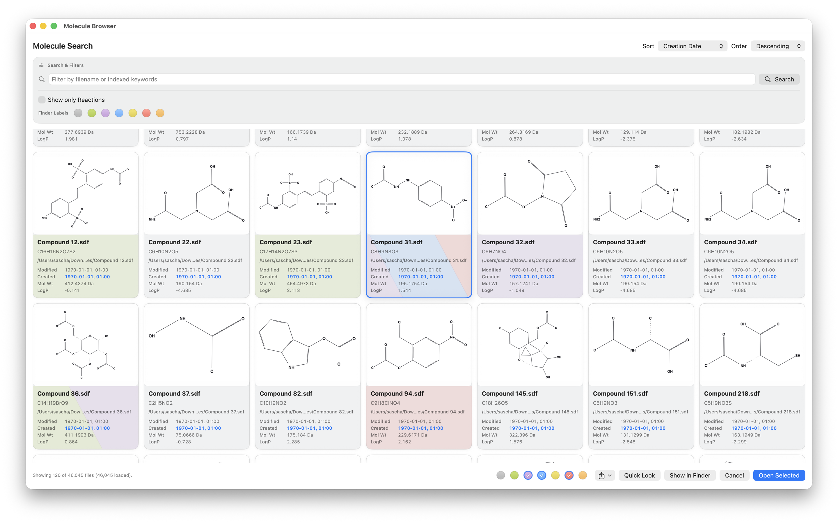 - Search molecule and reaction files locally through Spotlight metadata and preview them with Quick Look.